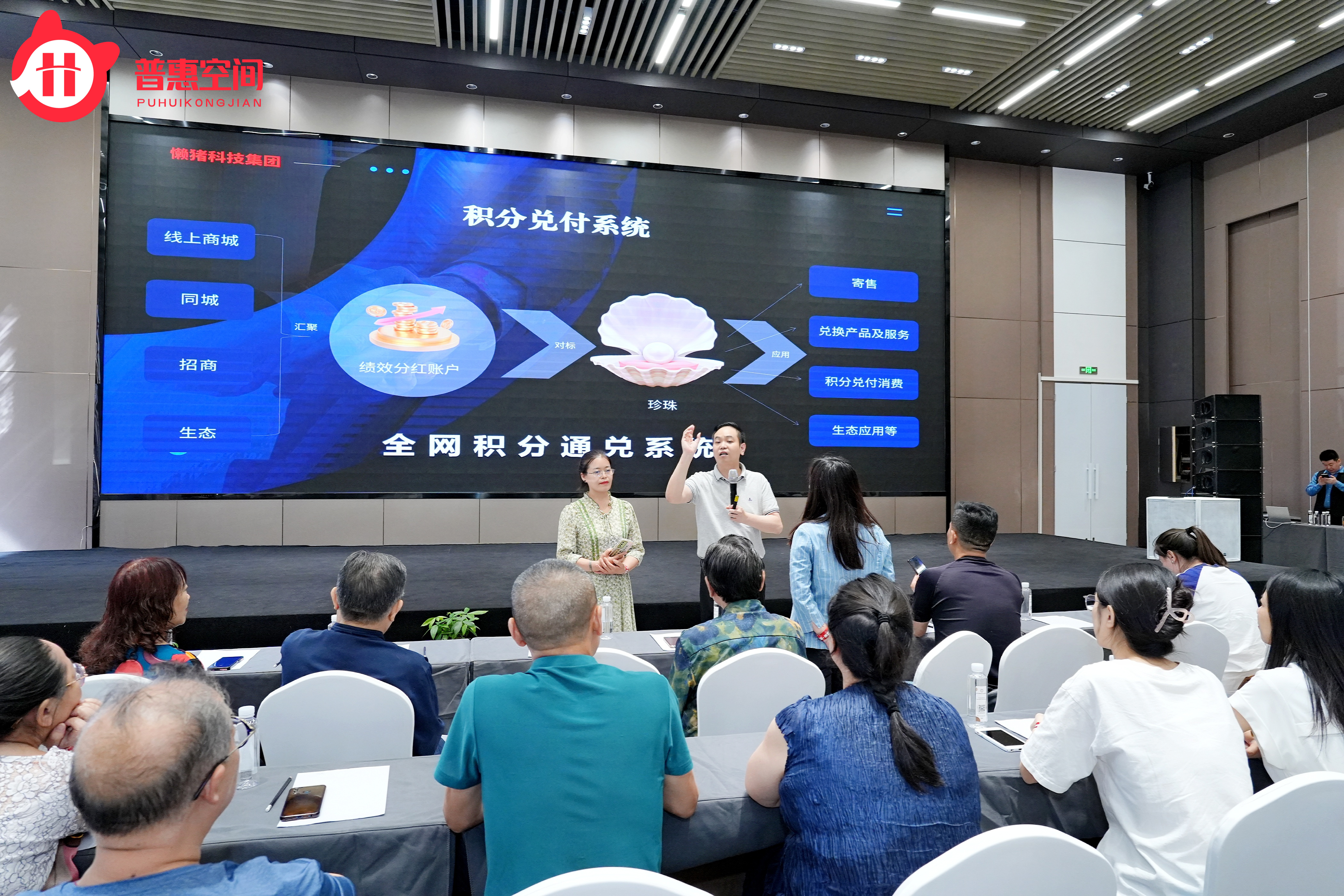 本次论坛由懒猪科技商学院杨院长主持,战略合作伙伴状元家族掌门人邹总作开场致辞,懒猪科技执行总裁卢总就传统商业拥抱数字经济做了全方位阐释:普惠空间是懒猪科技(股票代码:HK08379)旗下价值互联消费增值生态共享平台。